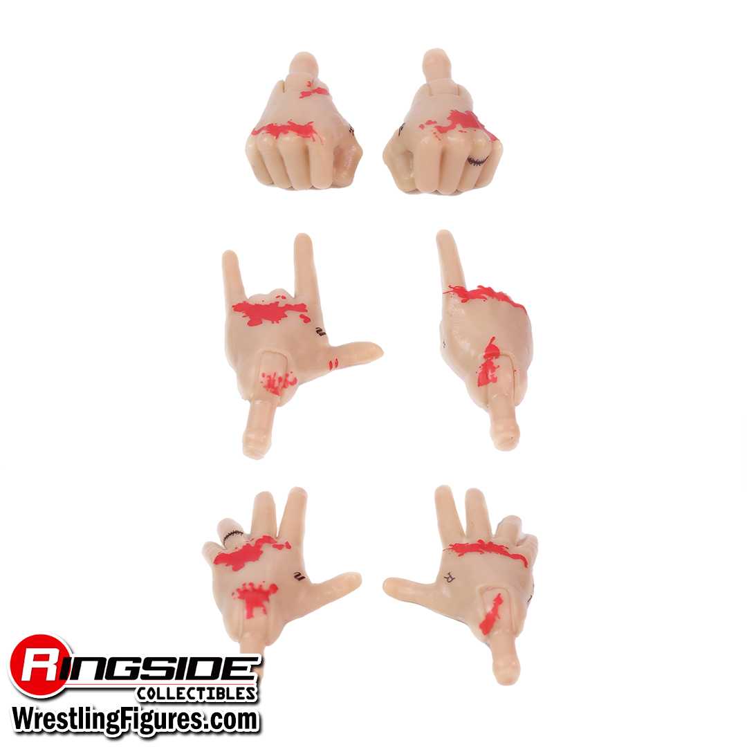 Accessories Include: 2 Alternate Bloody Heads, 3 Sets of Alternate Hands, Dog Tag Necklace, Fabric Death Riders Cut-off T-Shirt, Entrance Jacket & International Championship Belt! Ages 13+